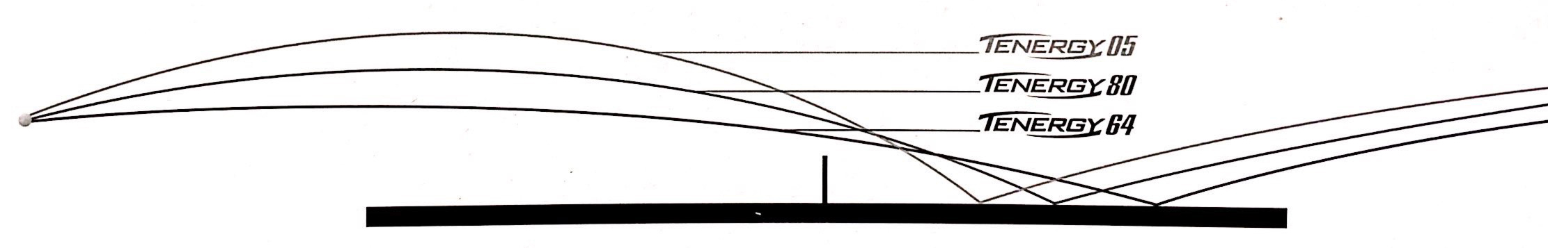 The ball trajectory of a topspin shot hit with TENERGY 05 is a pronounced curve, dew to heavy spin. This enables a most precise active topspin play. The trajectory of TENERGY 64 is more flat and low in comparison, resulting in a longer travel distance and higher speed of the ball. The trajectory of TENERGY 80 is exactly in between 05 and 64, as are its playing characteristics.